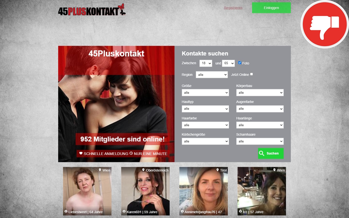 Positive und negative Eigenschaften von 45PlusKontakt.com
