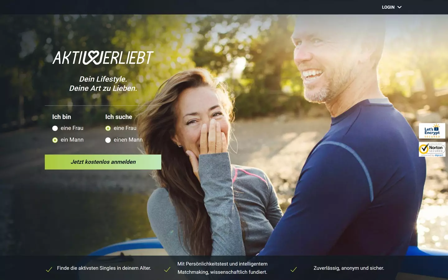 Aktiv-Und-Verliebt.de ist unser Testsieger in der Kategorie Partnervermittlung. Die Online-Dating-Plattform konnte uns in vielerlei Hinsicht überzeugen. Es handelt sich um eine Online-Partnerbörse, die zwar zunächst eine recht grobe Zielgruppe anspricht, aber dennoch sehr hohe Aussichten auf Erfolg bietet. Hier kommen Singles zusammen, die einen aktiven, gesunden und achtsamen Lebensstil haben. Eine weitere Charakteristik ist, dass die User keine erotischen Abenteuer, sondern Lust auf eine ernsthafte Beziehung mit langfristiger Planung haben. Die Community hat demnach klare Vorstellungen. Allgemein lässt sich die Mitgliederstruktur als offen, freundlich und aktiv bezeichnen.