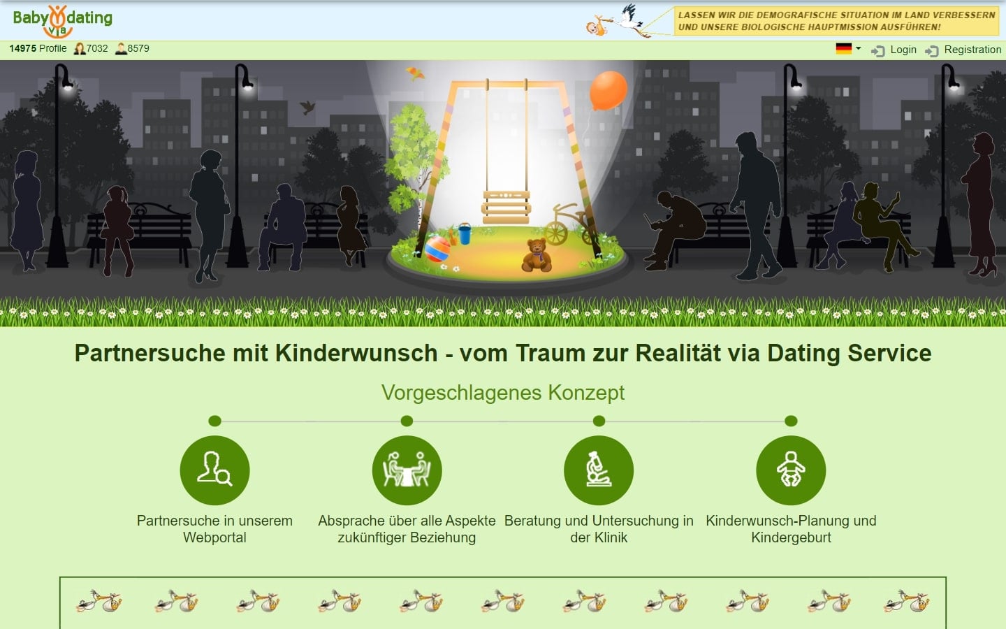Die Startseite der BabyViaDating.de Datingseite ist sehr übersichtlich und modern gestaltet. Ich erhalte hier viele Informationen über die Zielgruppe und Nutzung der Seite. Wer einen Kinderwunsch hat, der soll auf der Seite richtig sein. Hier kann ich laut Angaben auf der Startseite eine langfristige Beziehung für gemeinsame Kinder finden. Aber auch nur eine Samenspende scheint beispielsweise möglich zu sein. Zusätzlich kann ich verschiedenste Erfahrungsberichte lesen. Diese sind hier alle recht positiv. Eine Registrierung kann sich also durchaus lohnen. Auch eine Suche kann ich bereits verwenden und mir passende Partner anschauen. Für genauere Informationen ist aber eine Registrierung notwendig.