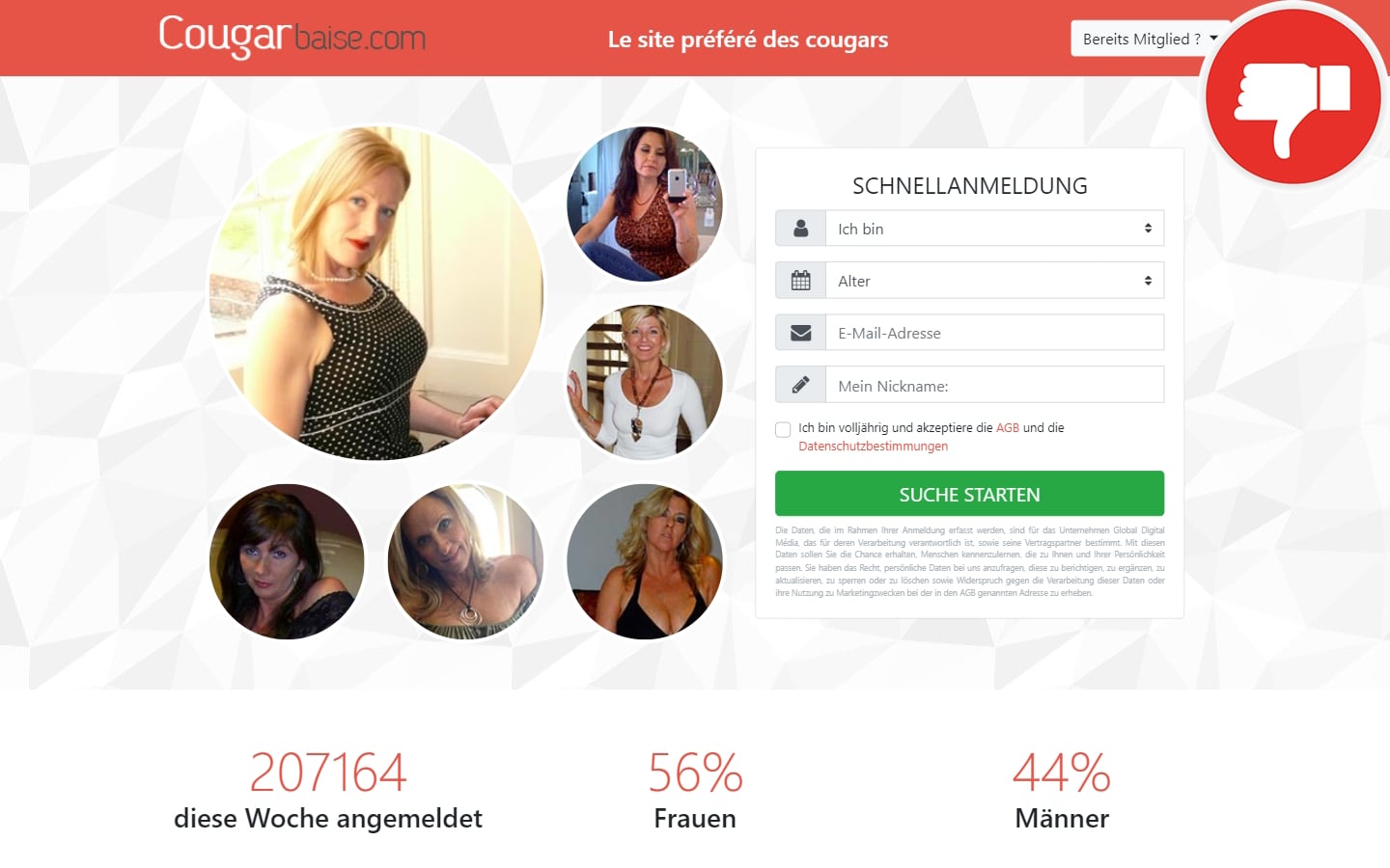 Bei CougarBaise.com scheint es sich um einen geeigneten Ort zu handeln, um reife Frauen kennenzulernen und neue Erfahrungen zu sammeln. Auf den ersten Eindruck wirkt die Dating Plattform relativ vielversprechend. Nach einiger Recherche stellt sich jedoch heraus, dass die Seite von einer äußerst fragwürdigen Firma betrieben wird, die schon mehrfach mit Abzocke in Verbindung gebracht wurde. Die Global Digital Media SA, aus dem Schweizerischen Genf, ist für mehrere zwielichtige Dating Webseiten verantwortlich.