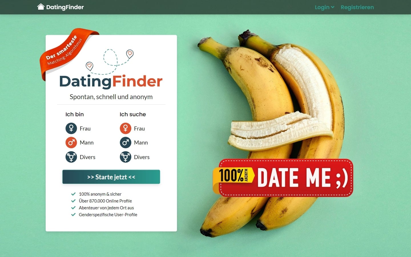 Eine ganz besondere Dating-Community soll uns auf der Dating-Finder.com Dating-Seite erwarten. Ich teste diese Art von Dating-Webseiten seit 10 Jahren regelmäßig, deswegen scheint das Ziel hier aber nicht die Suche nach der großen Liebe zu sein. Viel mehr soll es hier nur um kurzfristige Bekanntschaften und spannende Online-Gespräche gehen. Das Design der Seite macht dabei einen sehr guten Eindruck. Ich kann mich auf Anhieb gut zurechtfinden und mit den zahlreichen Nutzern chatten.