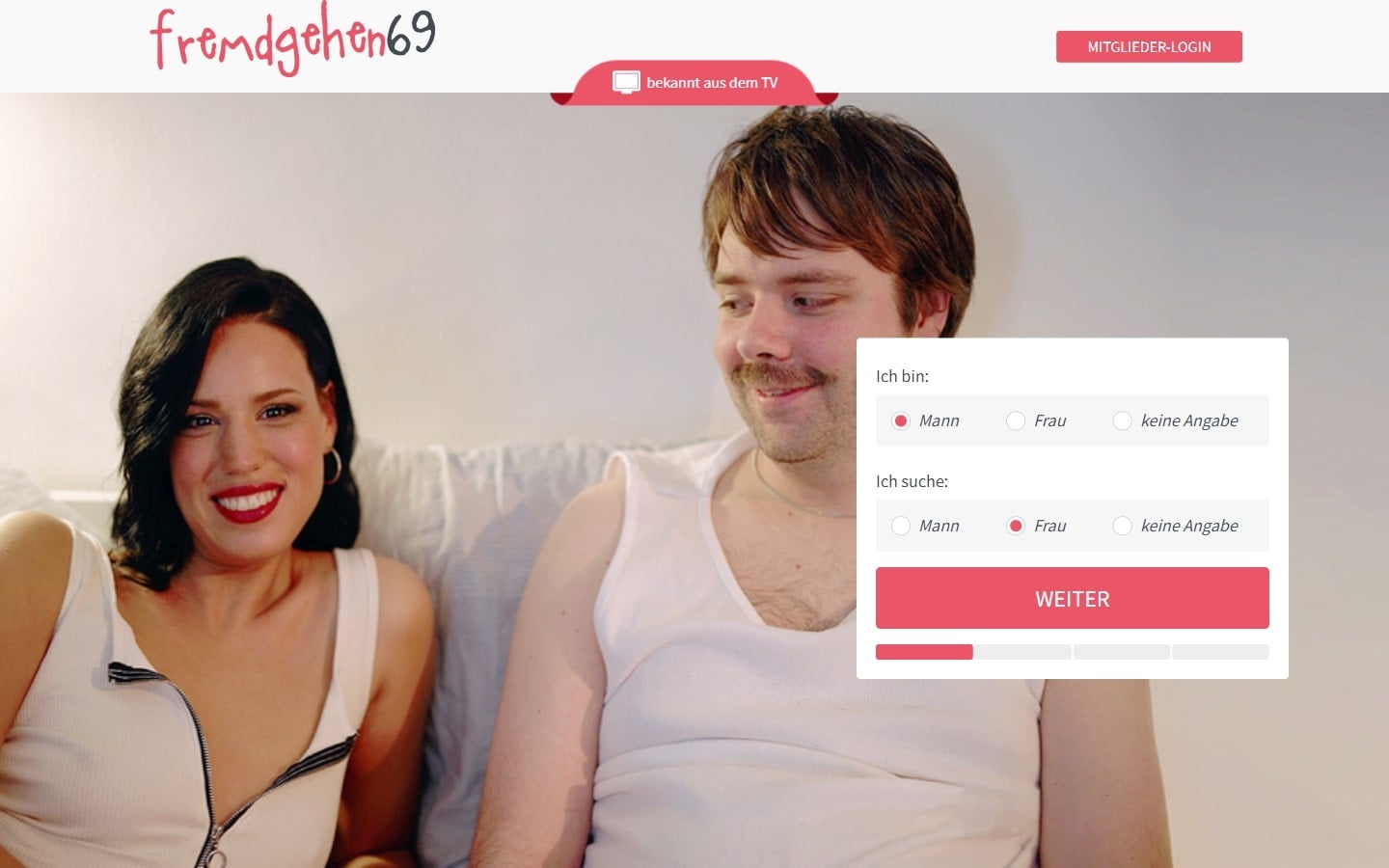 Wer auf der Suche nach der großen Liebe ist, der wird auf der Fremdgehen69.online Datingseite sicherlich nicht fündig. Hier ist die Zielgruppe klar definiert. Ich soll auf der Webseite einen Seitensprung und andere kurzfristige Bekanntschaften finden können. In einem modernen Design kann ich mich auf der Webseite gut umschauen und einige interessante Profile entdecken. Die Webseite soll zudem auch aus dem TV bekannt sein.