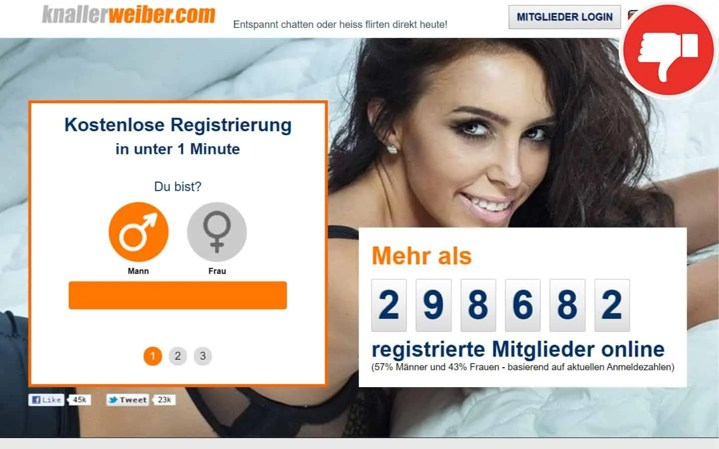 Auf der Startseite von KnallerWeiber.com lesen wir eine hohe Mitgliederzahl. Knapp 300.000 Mitglieder soll es geben und man kann der Anzahl an Usern sprichwörtlich dabei zusehen, wie diese steigt. Zudem wirbt das Dating Portal mit einer kostenlosen Anmeldung. Wir haben ein wenig Recherche betrieben und mussten dabei feststellen, dass die Seite eine Abzocke ist. Im Netz fanden sich Berichte über einen moderierten Chat.