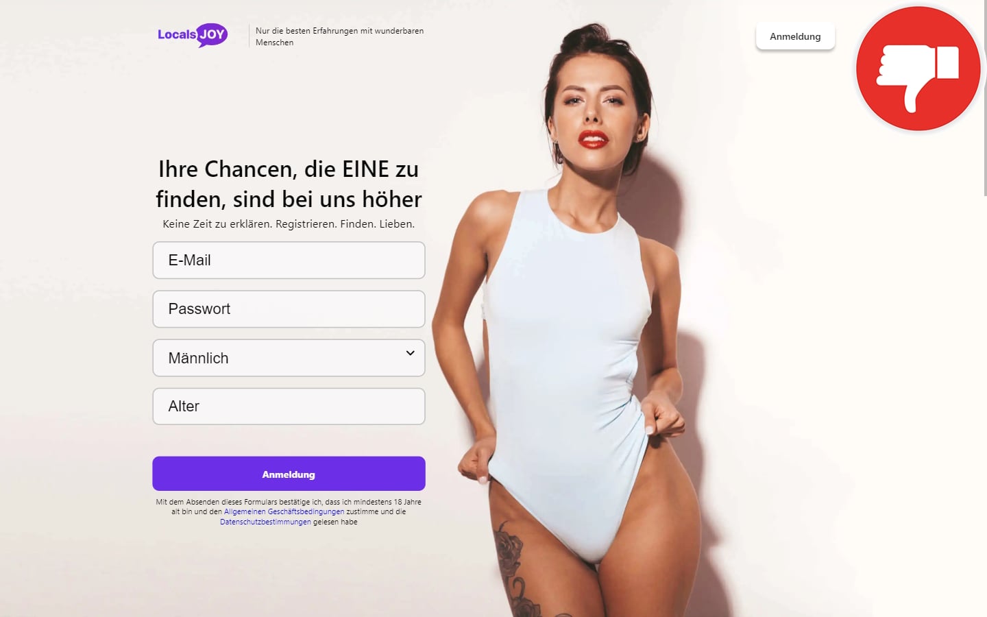 Das Online-Dating-Portal LocalsJoy.com sieht schick und ansprechend aus. Auf der Startseite wird mit erotischen Inhalten sowie einigen Informationen geworben. Man könnte durchaus vermuten, dass die Seite eine vielversprechende Wahl ist. Das stimmt aber leider nicht. Die Plattform ist eine Abzocke durch eine Abofalle. Des Weiteren gibt es im Internet viele Berichte über einen moderierten Dienst. Allerdings sind Moderatoren nicht im Einsatz. Sie werden durch sogenannte Ice-Breaker-Nachrichten ersetzt. Das sind automatisch gesendete Nachrichten, welche an alle User gesendet werden. Jedes Mitglied sendet diese Nachrichten, erhält aber keine Benachrichtigung über das Versenden. Das Ziel ist dasselbe wie beim moderierten Chat.