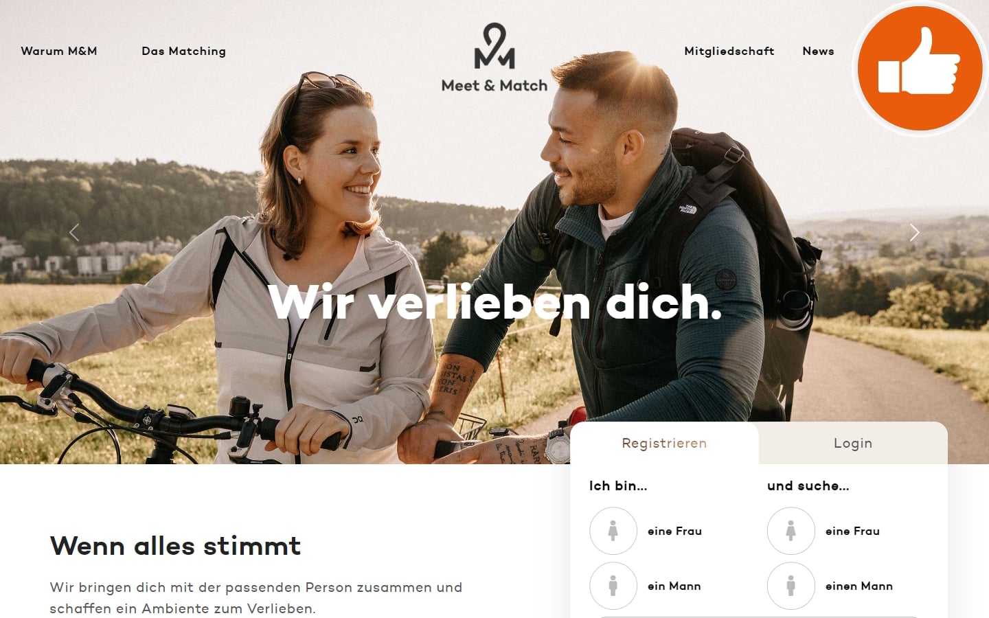 Das Dating-Portal MeetAndMatch.ch macht einen vernünftigen ersten Eindruck. Die Anmeldung ist kostenlos. Hier soll man auf sich zugeschnittene Singles treffen können. Dies geschieht, indem man bei der Anmeldung den M&M Fragebogen ausfüllt. Hierbei müssen Angaben zu Persönlichkeit und Vorlieben gemacht werden. Mit diesen Angaben wird mithilfe des sogenannten „wissenschaftlichen Matching“ der passende Partner gefunden.