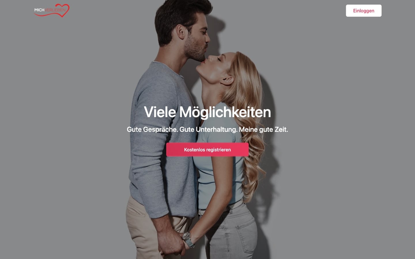 Auf den ersten Blick wirkt die Landingpage von MichVerlieben.com einladend und vielversprechend. Die Startseite zeigt zwei attraktive Menschen im jüngeren Alter, die sich mit verschlossenen Augen zärtlich berühren. Darunter sind ein paar Informationen über die Homepage sowie weitere Illustrationen von scheinbar verliebten Menschen platziert. Der Nutzer soll hier in eine Welt voller Leben, Liebe und Erotik abtauchen können, heißt es dort zum Beispiel. Auch das Thema Datenschutz und Diskretion springt mir sofort ins Auge. Das alles klingt für mich zu Beginn meines Tests noch sehr überzeugend. Um diese Aussagen allerdings überprüfen zu können, ist ab hier eine Registrierung notwendig.