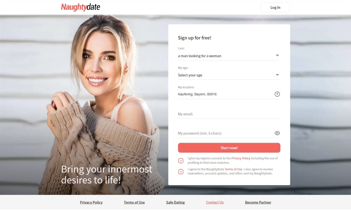 Auf der Startseite der NaughtyDate.com Datingseite bekomme ich neben dem Anmeldefeld das Bild einer gutaussehenden jungen Frau angezeigt. Darunter gibt es erste Informationen zu der Webseite zu lesen. Hier erwartet mich eine Partnerbörse. Echte Dates und aufregende Chats werden mir dabei versprochen. Viele aktive Mitglieder sollen hier dafür sorgen, dass ich schnell neue Kontakte finden könnte. Eine Erfolgsaussicht ist also durchaus gegeben. Inwiefern ich hier tatsächlich neue Kontakte knüpfen kann, das werde ich erst nach einer Registrierung erfahren. Der erste Eindruck ist jedoch durchaus positiv.