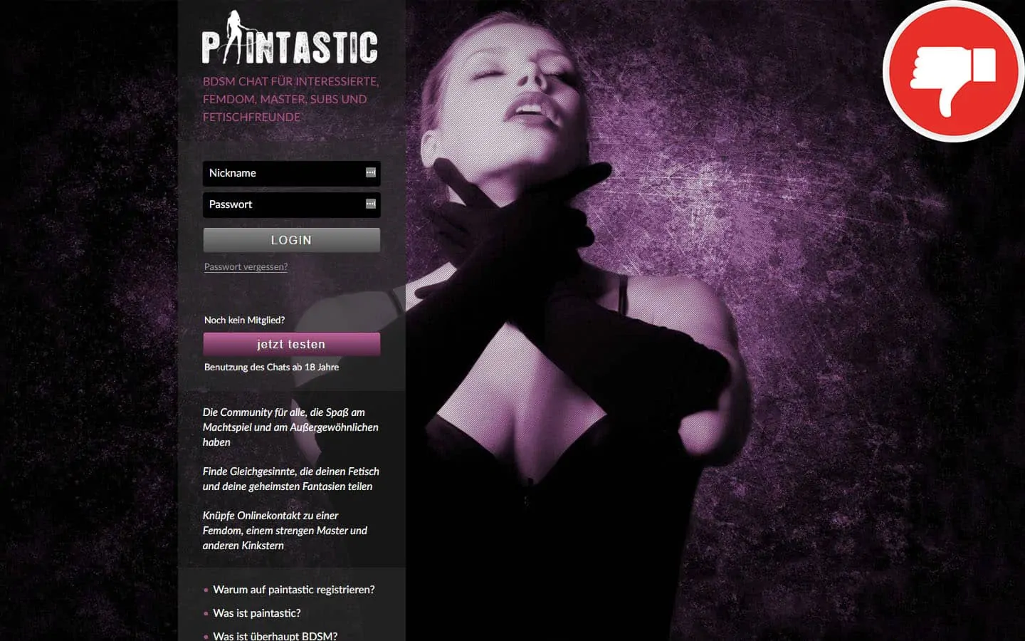 Die Dating-Seite PainTastic.de hat zwar eine schöne Startseite, allerdings sind dort so gut wie keine brauchbaren Informationen über die Plattform, das Angebot und den Preisen zu finden. Das dient unserer Erfahrung nach nicht dazu, die Ästhetik der Startseite zu behalten, sondern um eine Abzocke zu verstecken. PainTastic.de wirbt mit einer kostenlosen Anmeldung und verspricht, dass man hier schnell auf gleich gesinnte Personen trifft. Vor allem Personen mit einem Fetisch für Machtspiele sollen hier endlich einen Platz haben, sich auszutauschen und zu treffen. Allerdings ist bis auf das Chatten nicht mehr möglich.