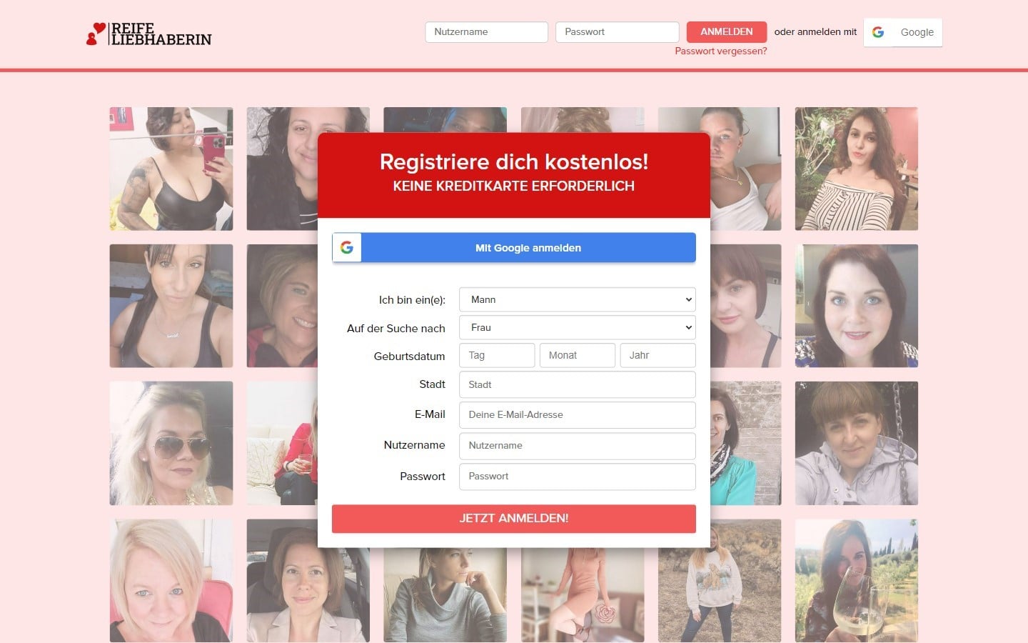 Die Startseite von ReifeLiebhaberin.com vermittelt mir einen mäßig ansprechenden ersten Eindruck. Es gibt viele Profilfotos von Nutzern. Es wird jedoch ein großer Bereich vom Registrierungsfenster verdeckt. Dies hat einen erheblichen Einfluss auf das Design der Seite. Angeblich sollen sich auf dieser Plattform täglich über tausend Mitglieder neu registrieren. Dank innovativer Suchwerkzeuge soll ich hier meinen Traumpartner finden. Die Seite möchte eine zuverlässige Umgebung schaffen, um online zu flirten. Sie möchte mir zudem die Erfahrung bieten, einfach neue Bekanntschaften zu machen und meine Wünsche auszuleben.