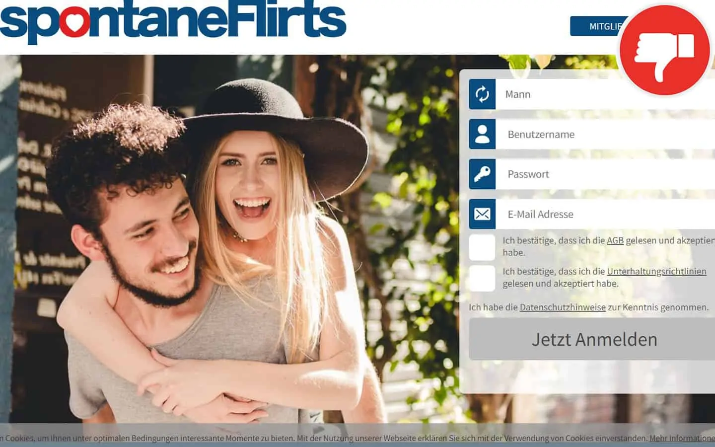 Die Dating-Seite SpontaneFlirts.com wirbt mit einer ansprechenden Startseite, vielen aktiven Mitgliedern und einer kostenlosen Anmeldung. Auf dem Portal soll es ein leichtes Spiel sein, schnell eine Person für einen heißen Flirt und ein Date zu finden. Allerdings stellen sich diese Angaben als falsch heraus.