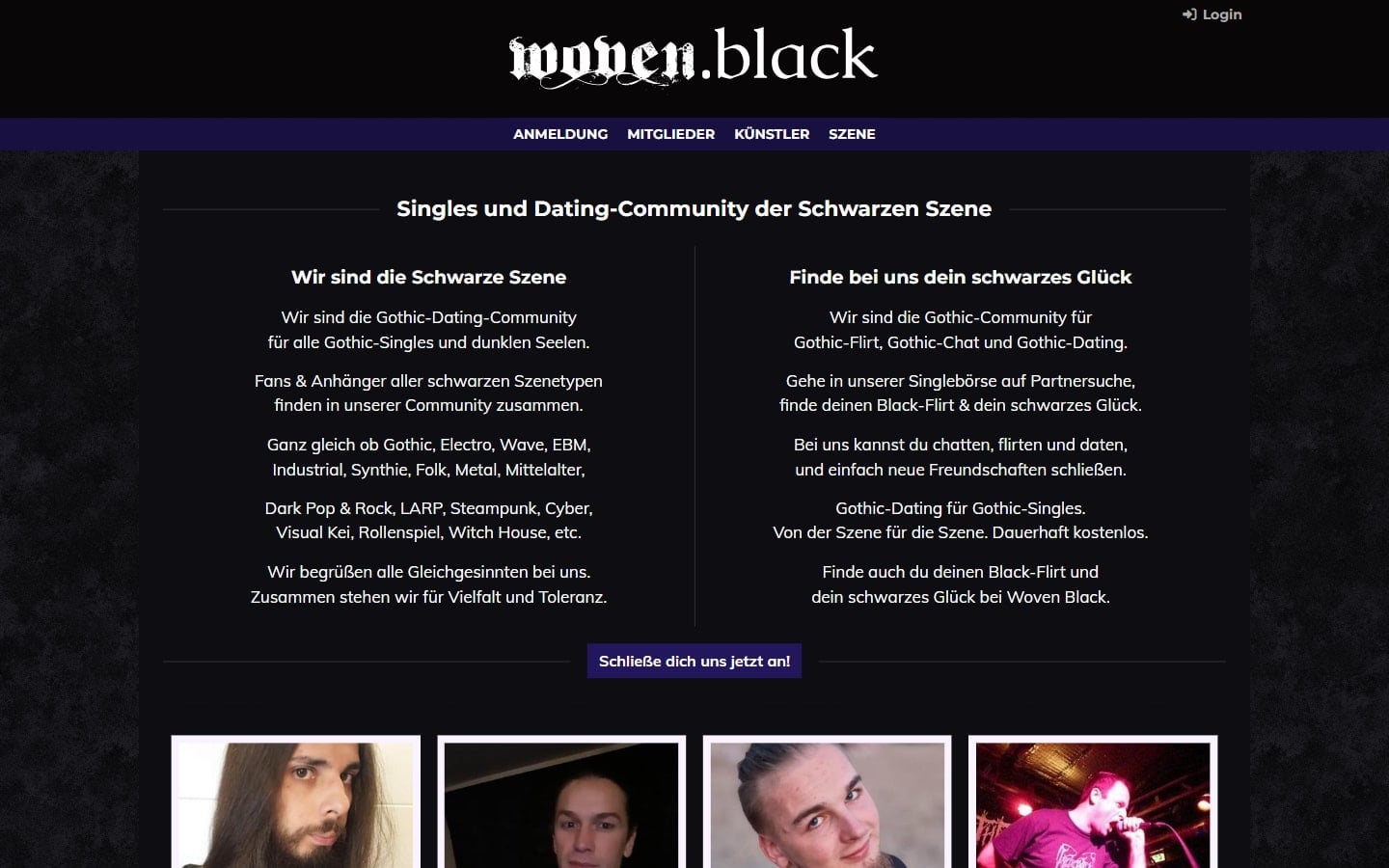 Wer sich für die Gothic-Szene interessiert oder selbst Teil dieser ist, der soll auf der Woven.black Plattform Gleichgesinnte treffen können. Unsere Erfahrungen im Test fallen dabei sehr positiv aus und wir können keine Abzocke feststellen. Der Betreiber Martin Schmid aus München in Deutschland bietet uns hier eine sehr übersichtliche und sichere Webseite, um sich mit Gleichgesinnten austauschen zu können.